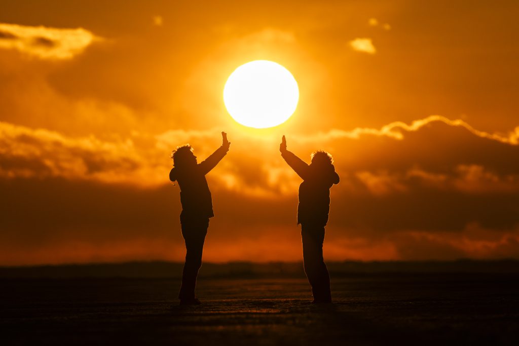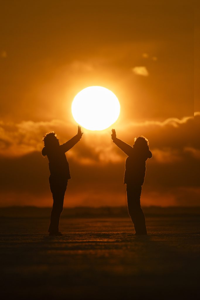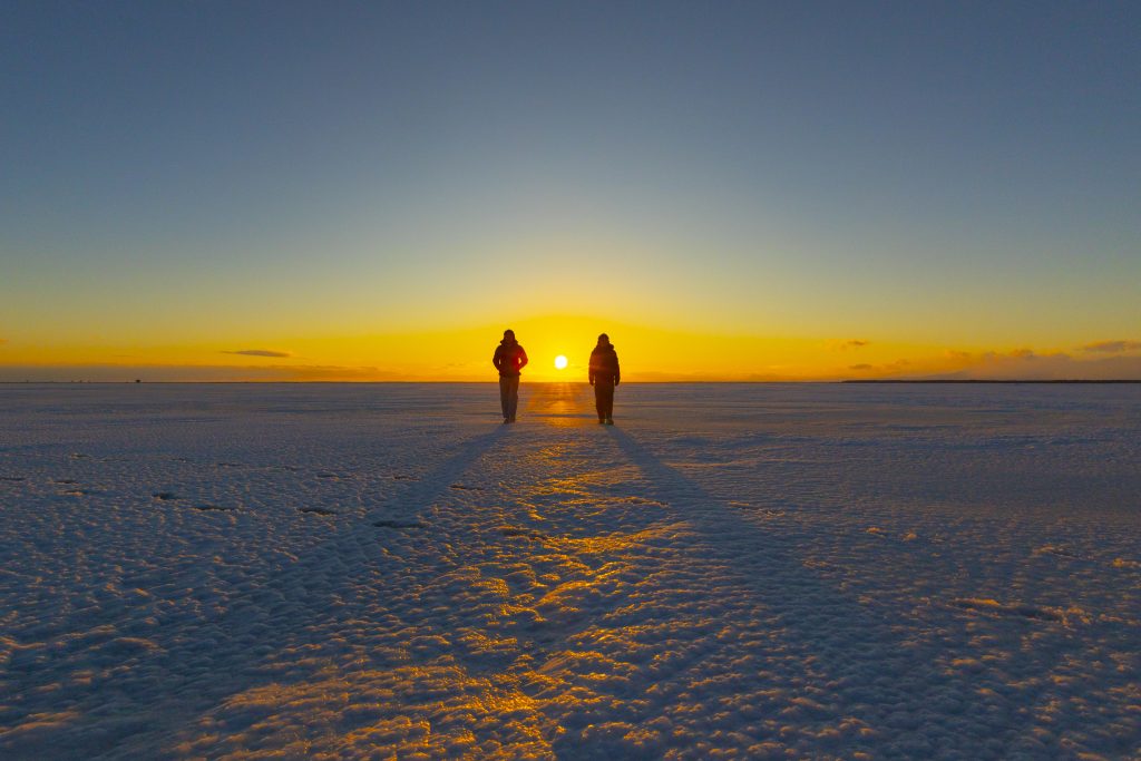 氷平線に沈む夕日を背景に最高のツアーになりました!